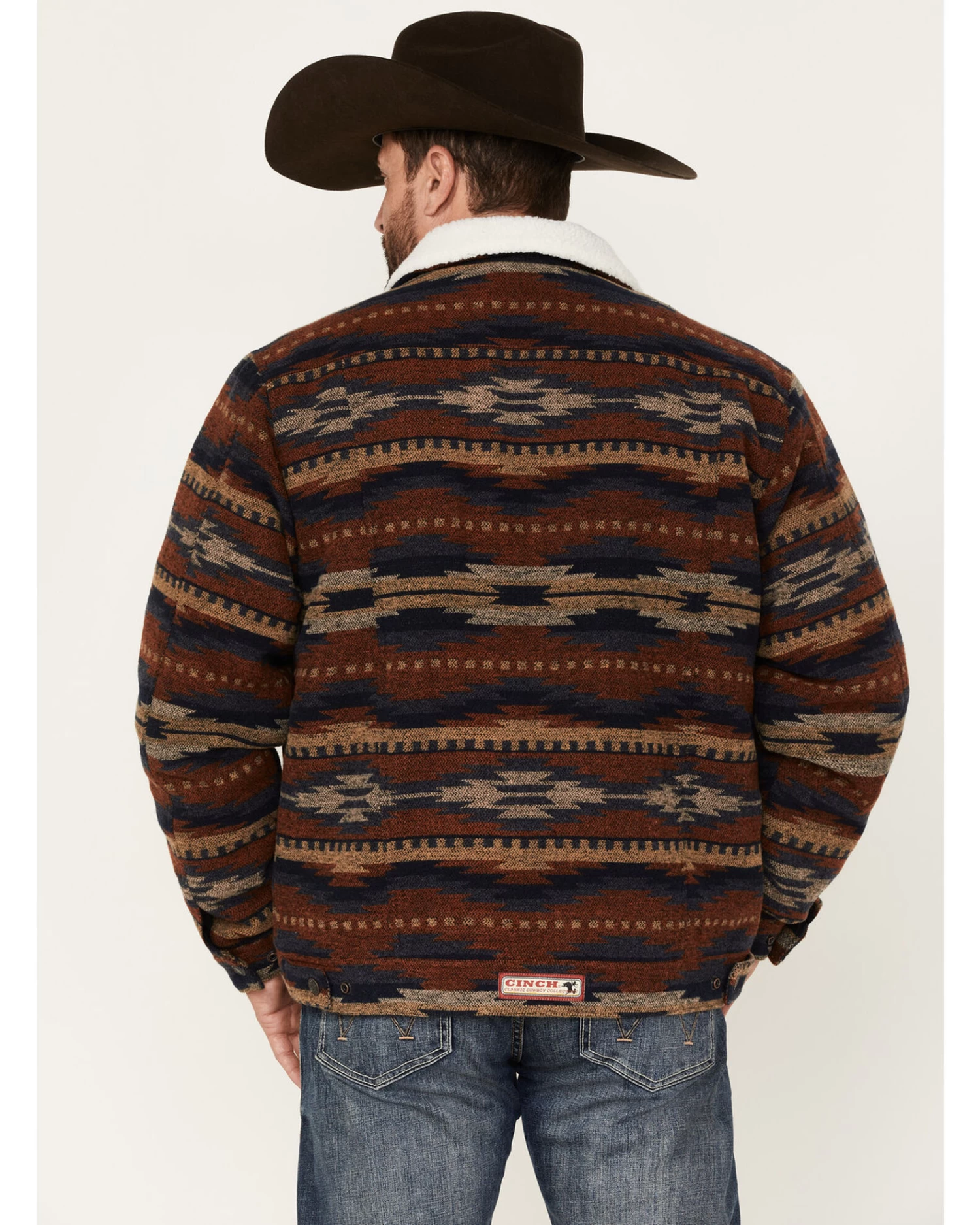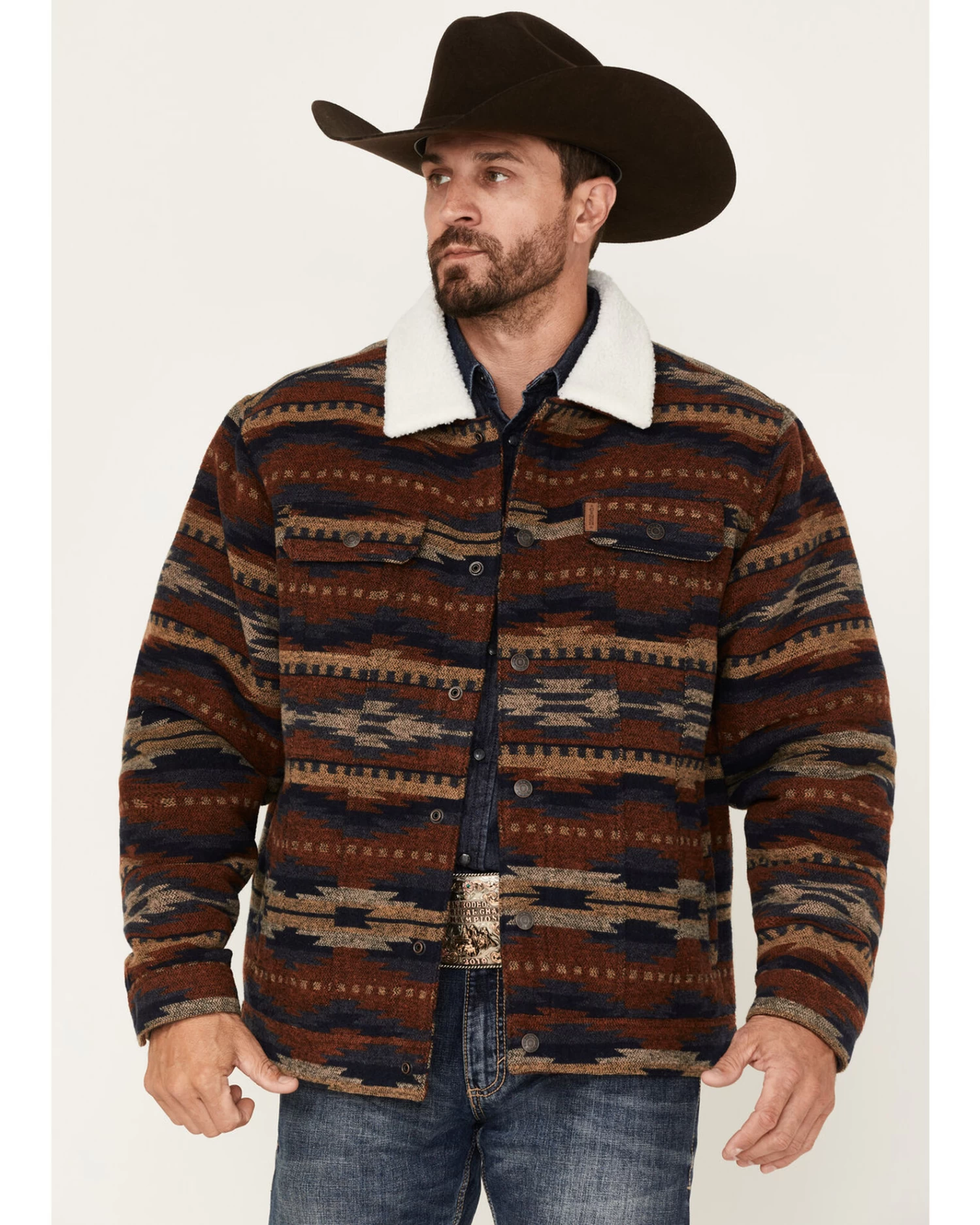 Cinch Men’s Southwestern Print Sherpa-Lined Snap Wool Trucker Jacket