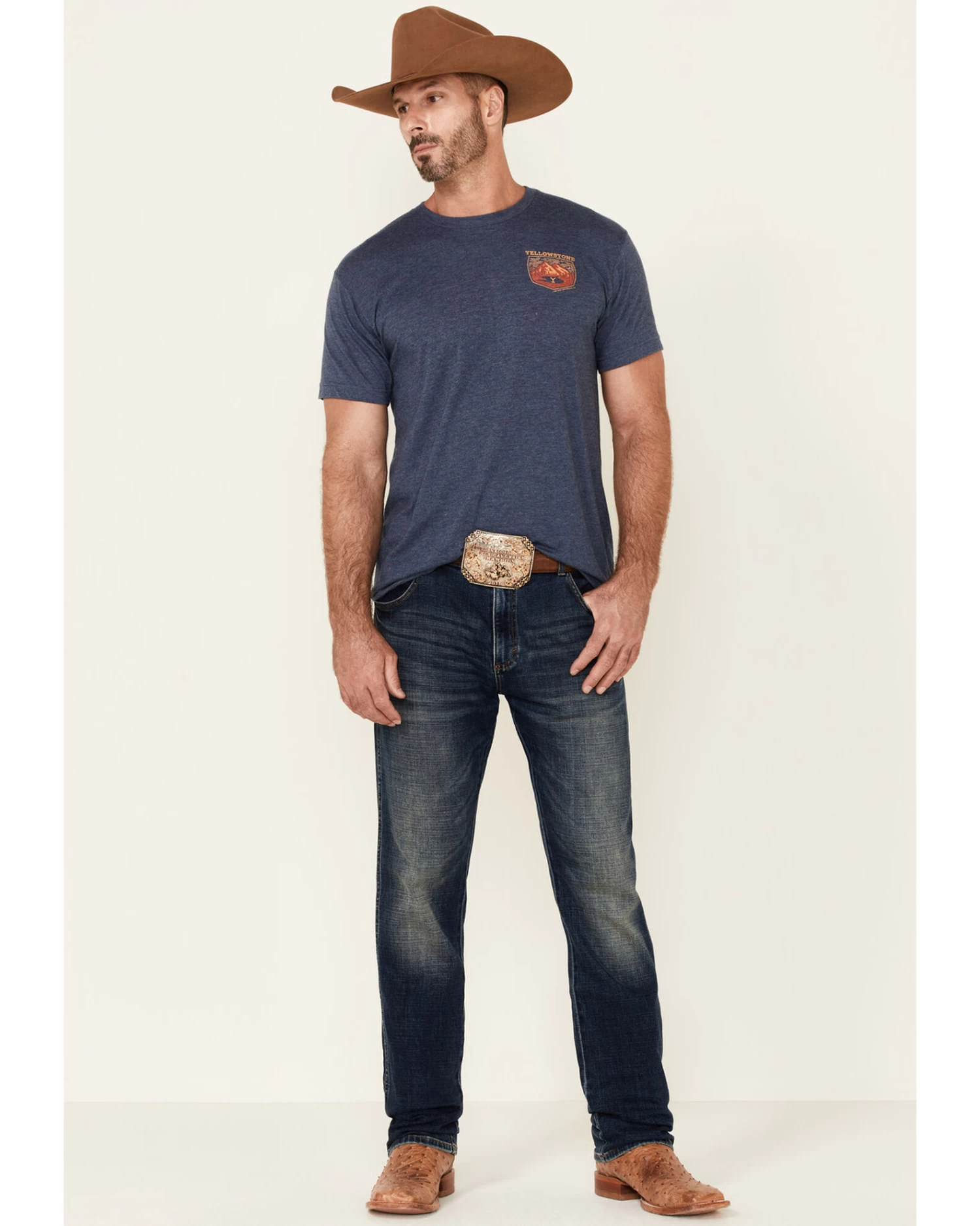 - “Yellowstone” Dutton Ranch logo with mountain range graphic on left chest